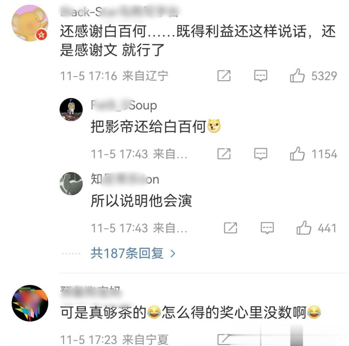 网友们听到王传君的发言表示既得利益还这么说话,茶里茶气的,这是来气白百何的吧?怎么得奖的心里没数吗?